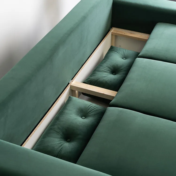 Zielona welurowa sofa z funkcją spania - Kanoni