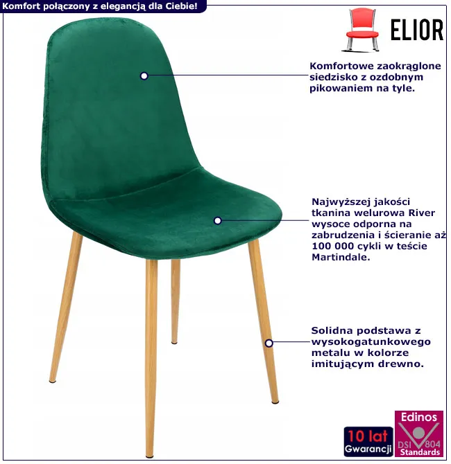 • Kliknij w link i sprawdź także inne krzesła welurowe zielone w sklepie Edinos.pl.