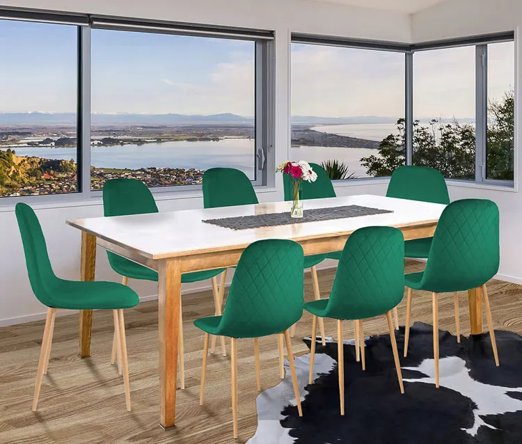 Jadalnia z wykorzystaniem zielonego krzesła pikowanego Lirma
