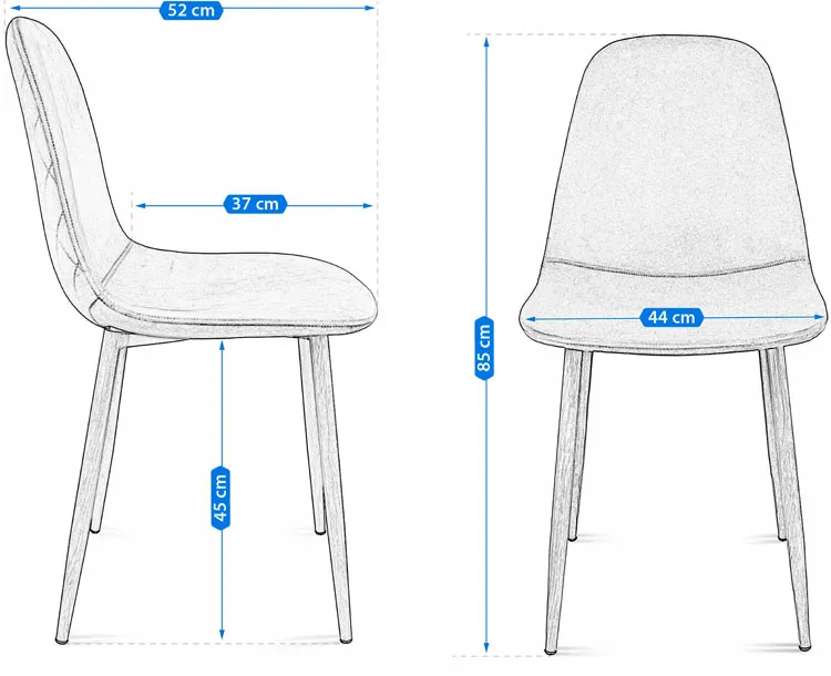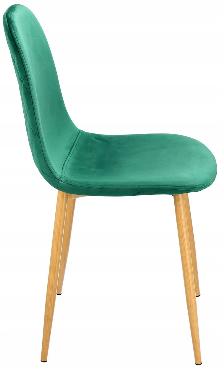 • Estetyka i funkcjonalność w jednym: Metalowe nogi z imitacją drewna tworzą stabilną podstawę i dodają krzesłu eleganckiego wyglądu. Delikatne pikowanie i przeszycia nicią na zewnętrznej stronie siedziska dodają mu charakteru.