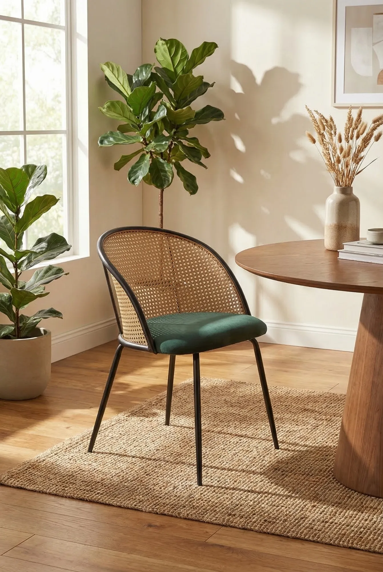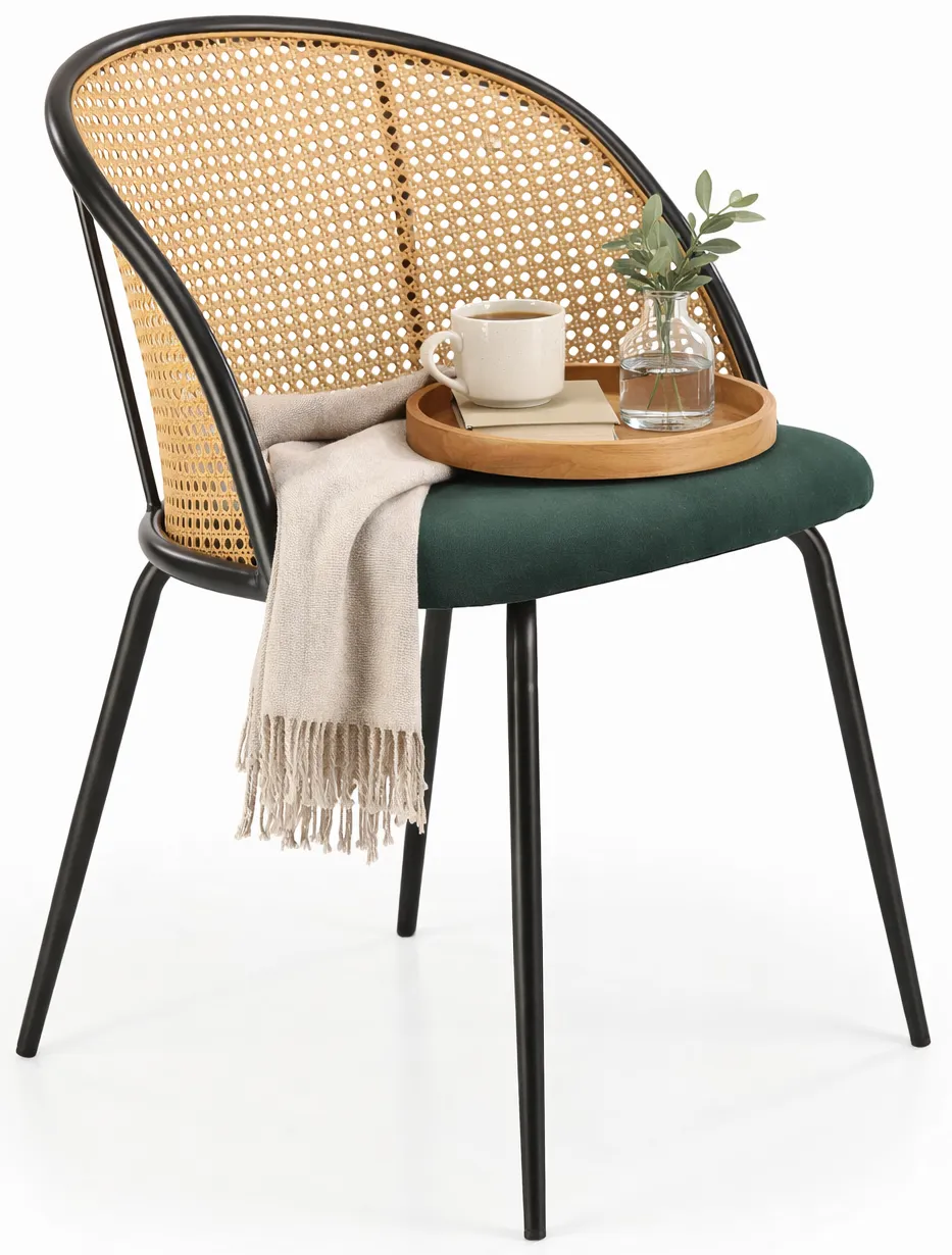 Dotyczy: Szare krzesło ażurowe z rattanowym oparciem - Vigdis