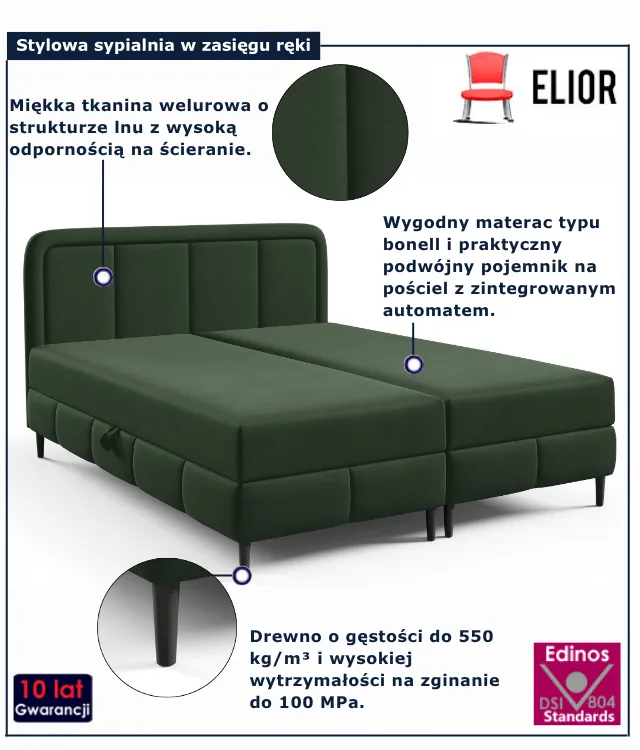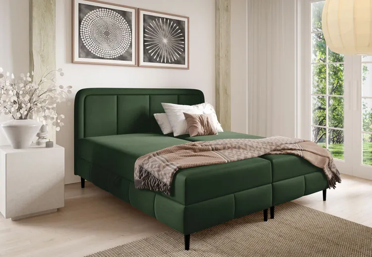 Dotyczy: Szare łóżko kontynentalne dwuosobowe z zagłówkiem Acianna - 5 rozmiarów