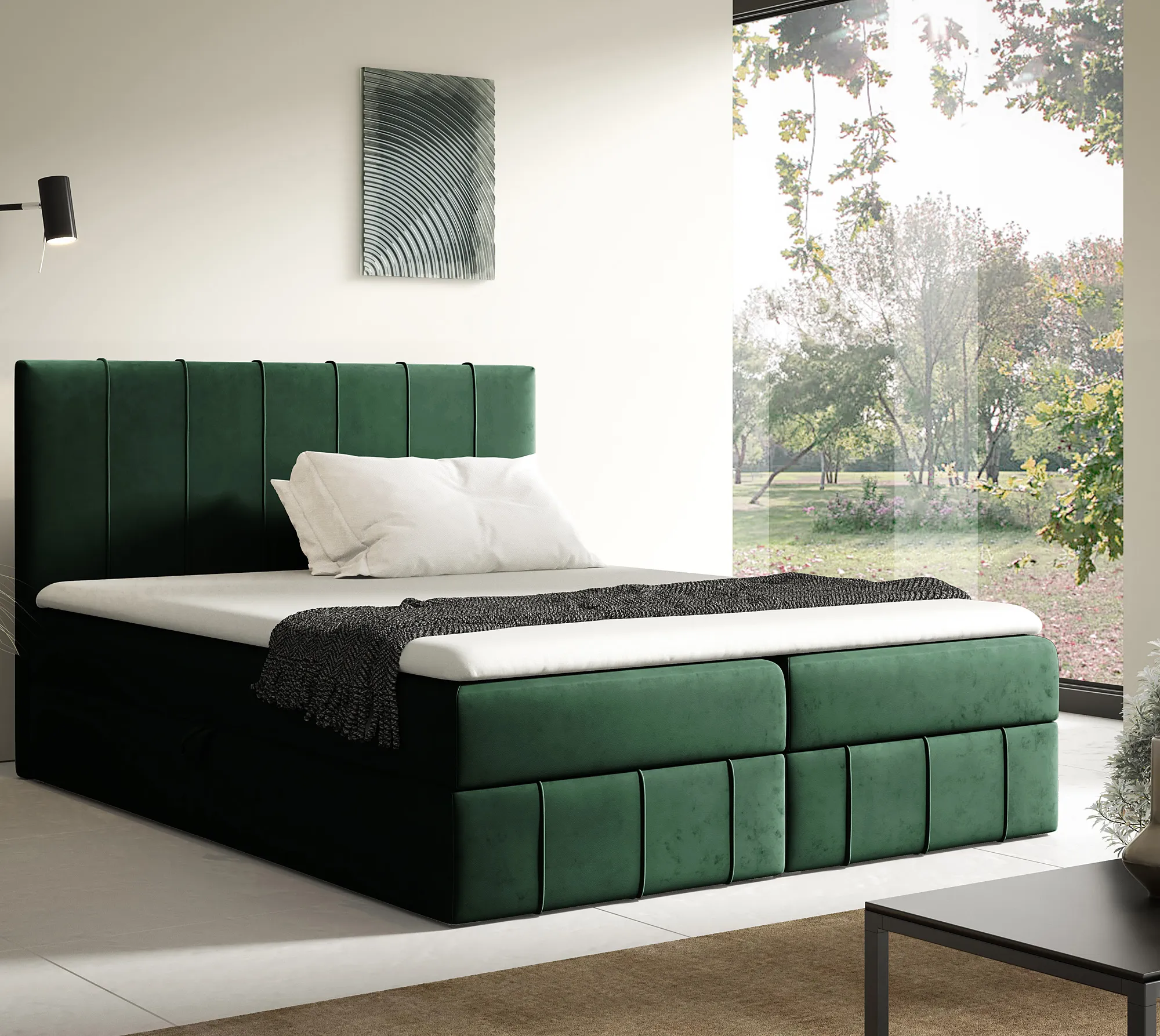 Dotyczy: Kremowe welurowe łóżko z pojemnikiem 5 rozmiarów - Elarivo