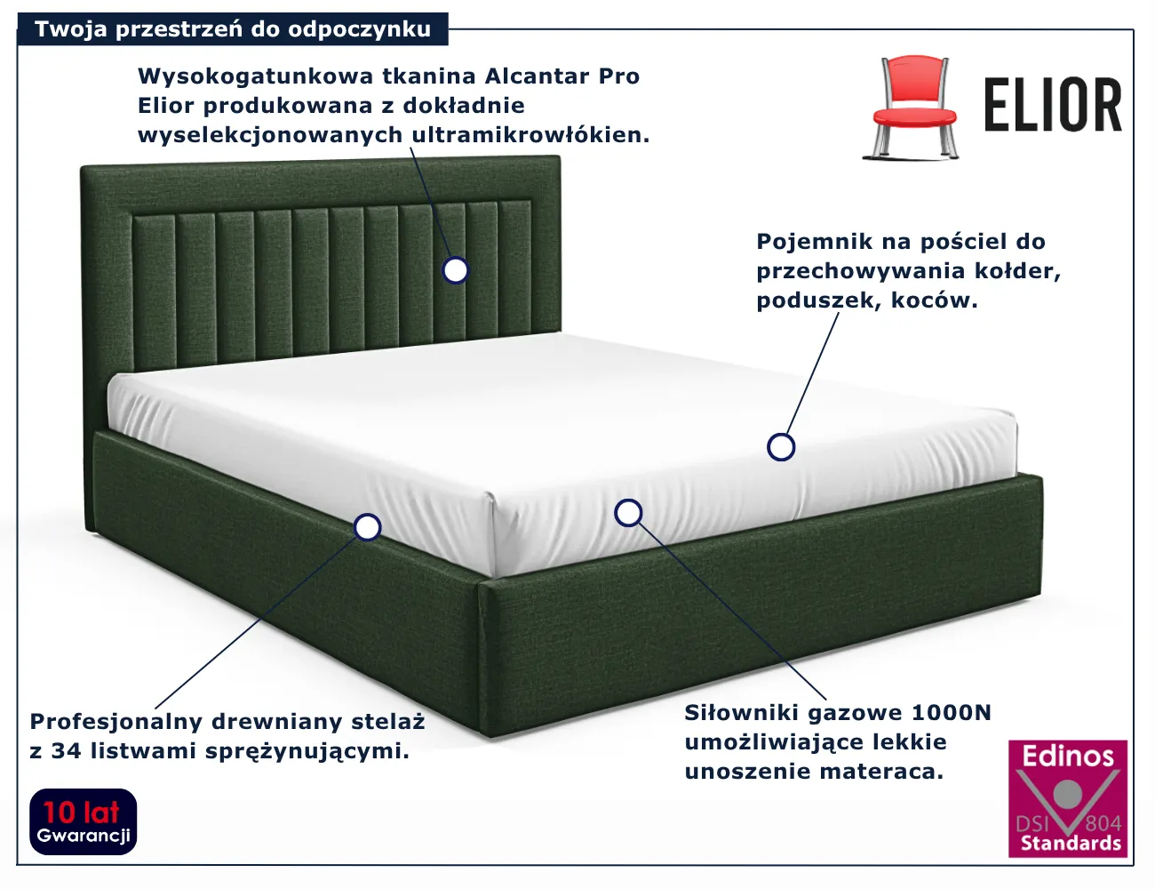 Dotyczy: Ciemobeżowe łóżko z pikowanym zagłówkiem 3 rozmiary - Merassi