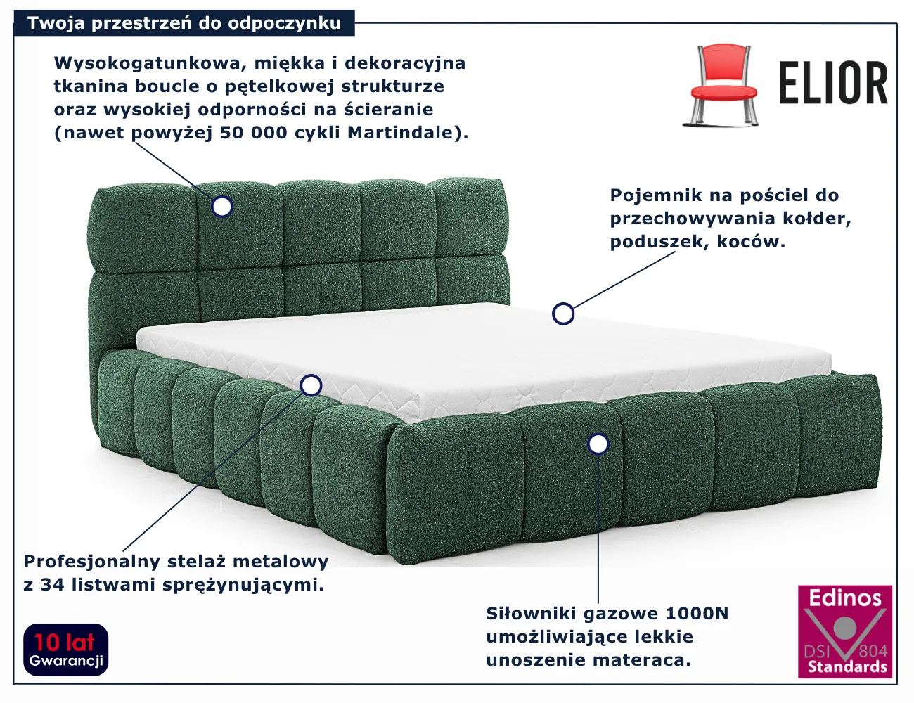 Dotyczy: Szare nowoczesne łóżko boucle 5 rozmiarów - Mellario