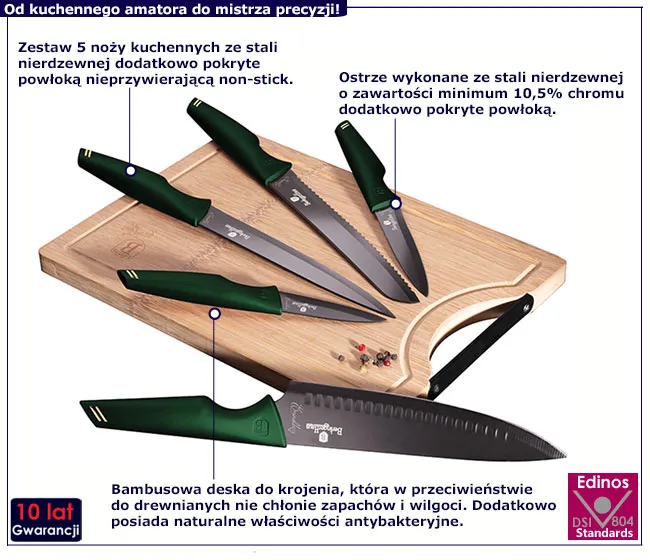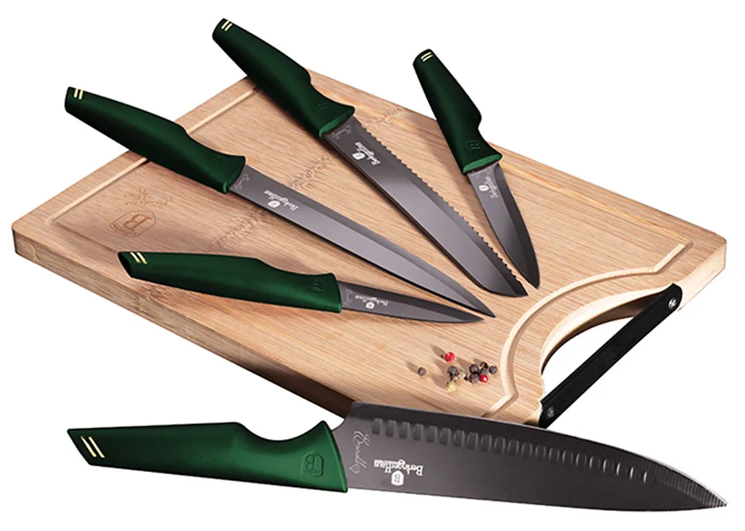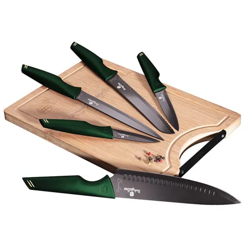 Zielone noże ze stali nierdzewnej z bambusową deską - Prado 4X