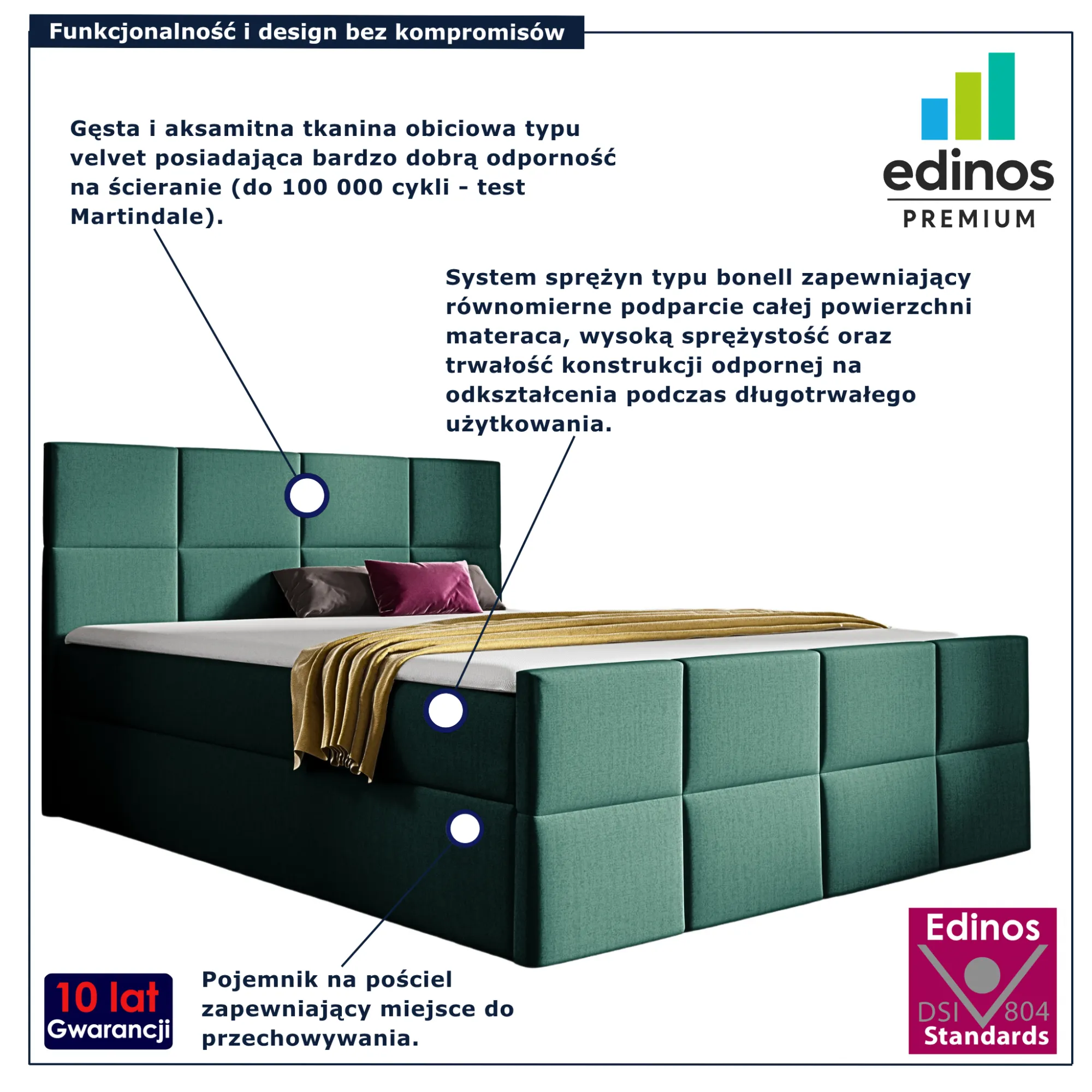Zielone pikowane łóżko 5 rozmiarów - Valmerio