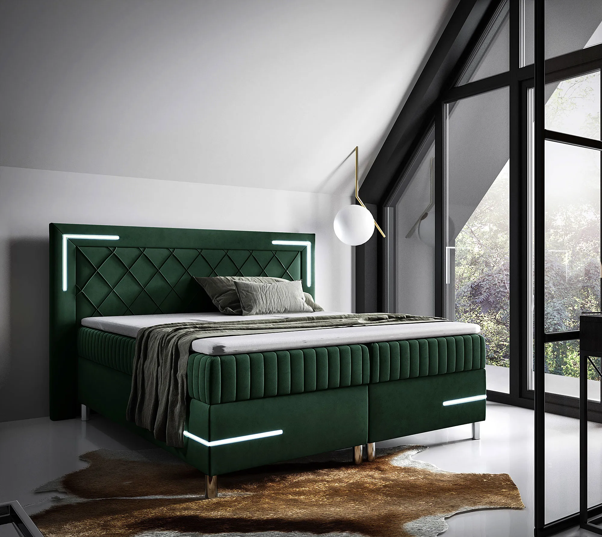 Aranżacja wnętrza z zielonym łóżkiem kontynentalnym Solterro