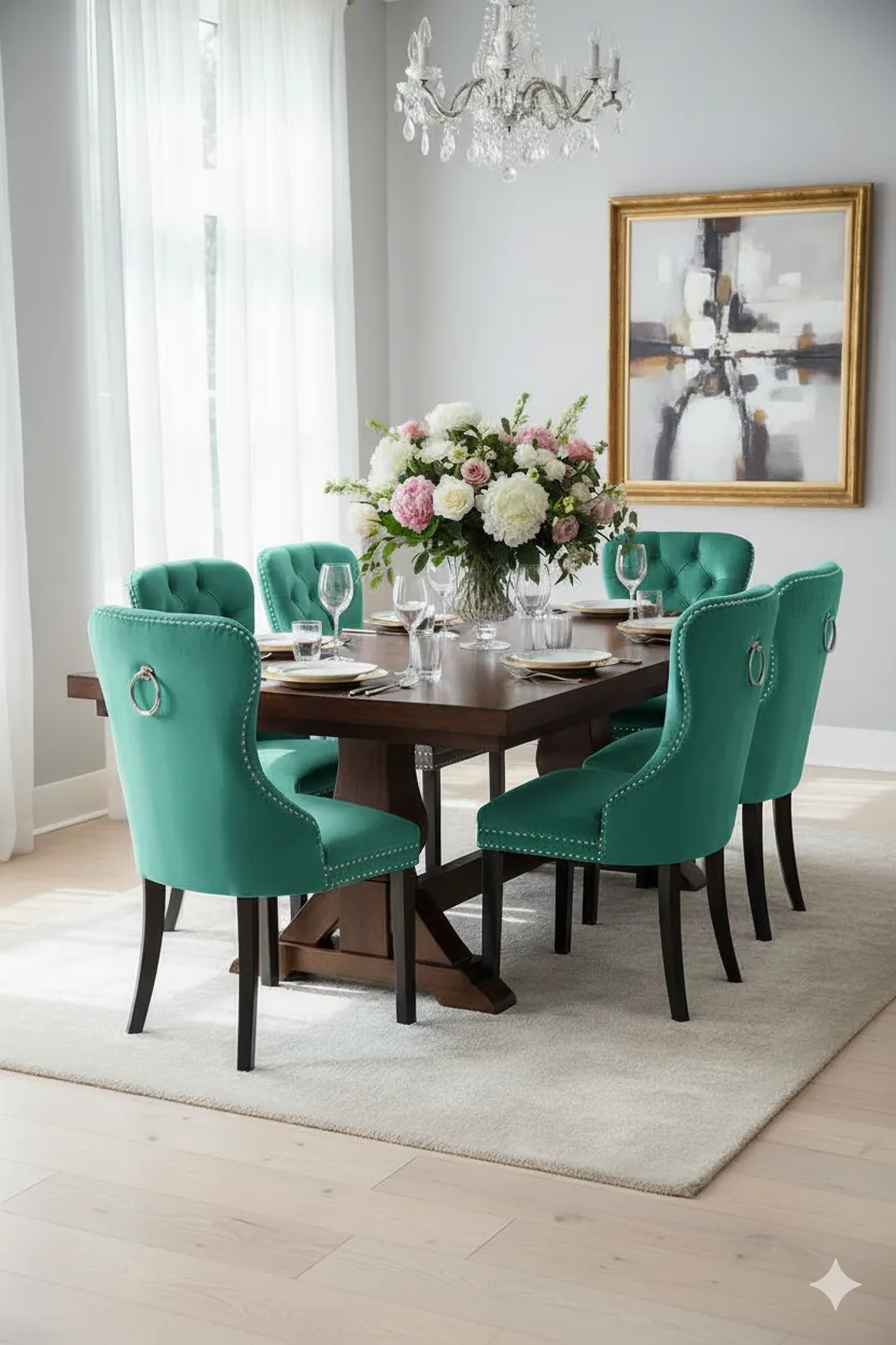 Dotyczy: Niebieskie welurowe krzesło pikowane - Imperia