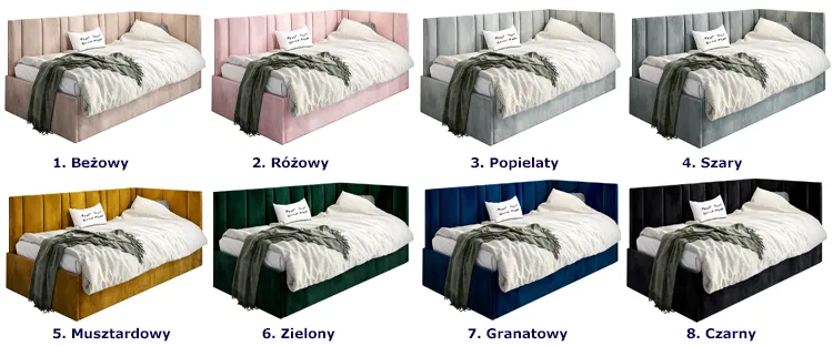 Dotyczy: Różowe łóżko tapicerowane typu L Meraje - 4 rozmiary
