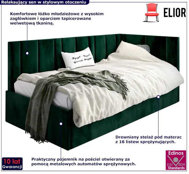 Dotyczy: Czarny tapicerowany tapczan młodzieżowy Meraje - 4 rozmiary