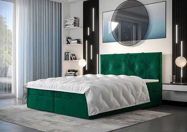 Zielone welurowe łóżko tapicerowane z pojemnikiem 4 rozmiary - Alviero