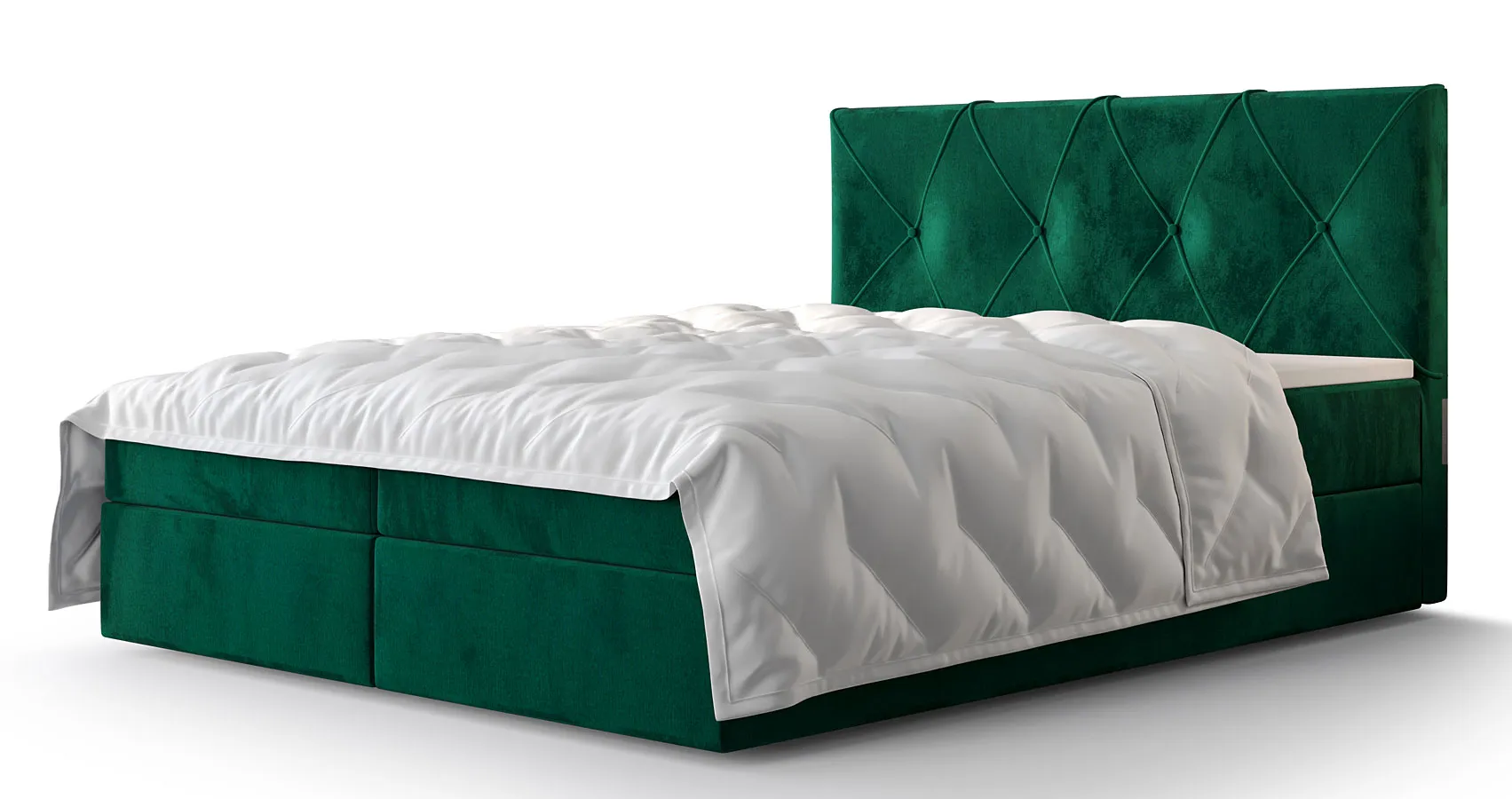 Zielone łóżko kontynentalne z pojemnikami Alviero