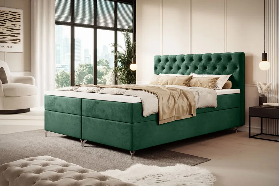 Zielony welur wygląda przepięknie i nadaje sypialni elegancki, luksusowy charakter. Pikowany zagłówek jest miękki i wygodny do opierania.. Dostawa była sprawna, a łóżko jest stabilne i solidnie wykonane - polecam!