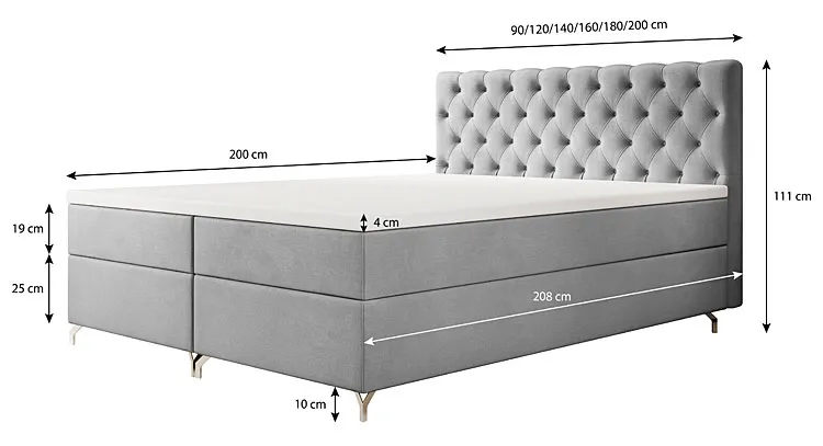 • Wymiary całkowite: długość 208 cm, szerokość materaca.