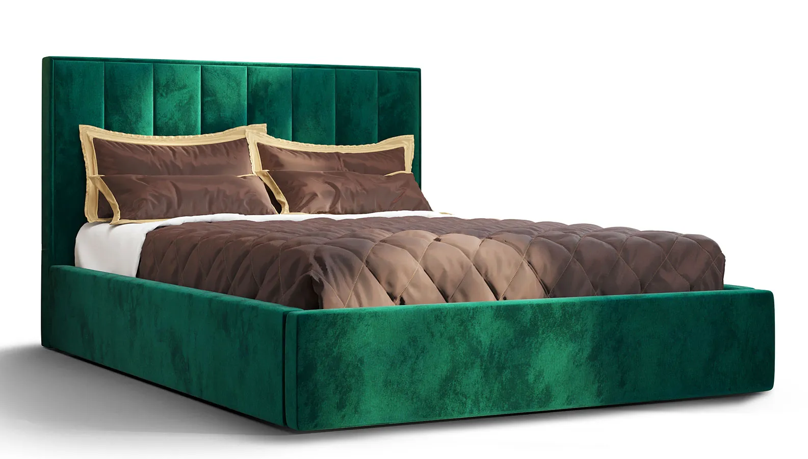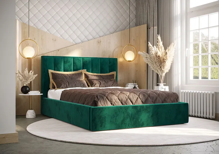 Zielone nowoczesne łóżko z pojemnikiem na pościel Vensari