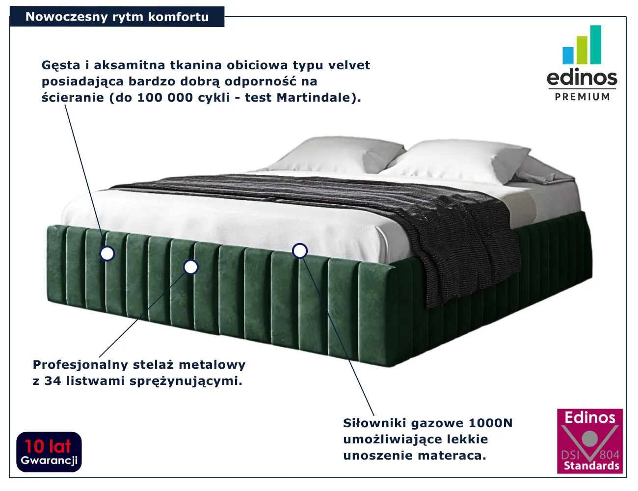 Dotyczy: Szare nowoczesne łóżko tapicerowane 5 rozmiarów - Tivrro