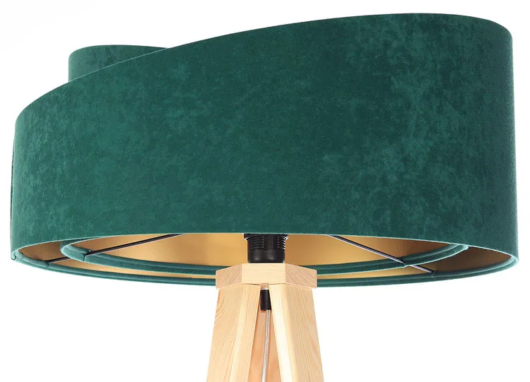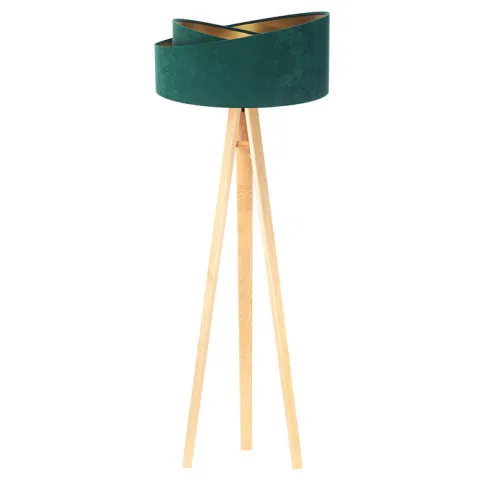 Dotyczy: Zielono-czarna drewniana lampa stojąca trójnóg - EXX250-Blubell