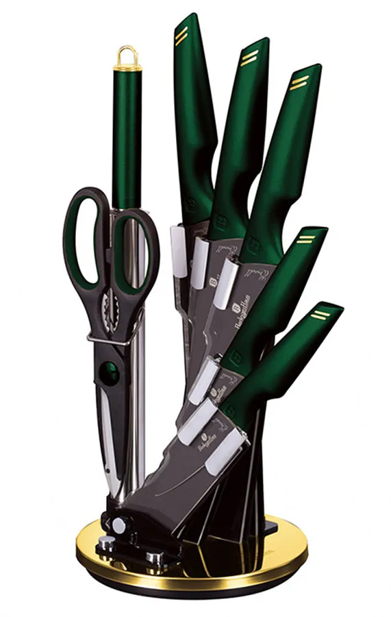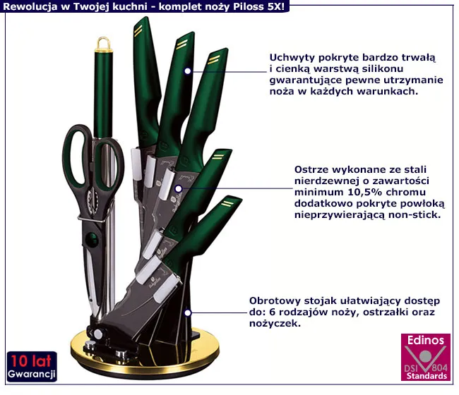 Dotyczy: Zielony komplet noży na obracanym stojaku - Eproni 3X