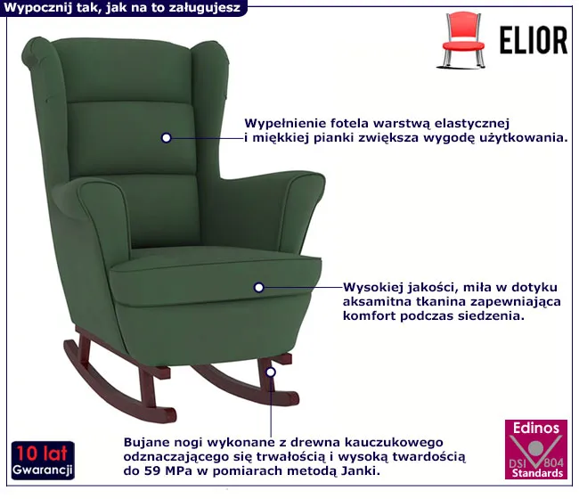 • drewniane, bujane nogi umożliwiają relaksujący, kołyszący ruch, idealny do odpoczynku