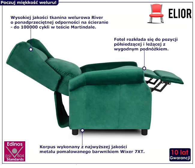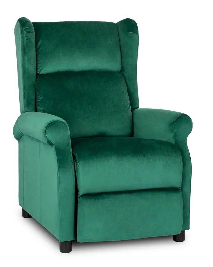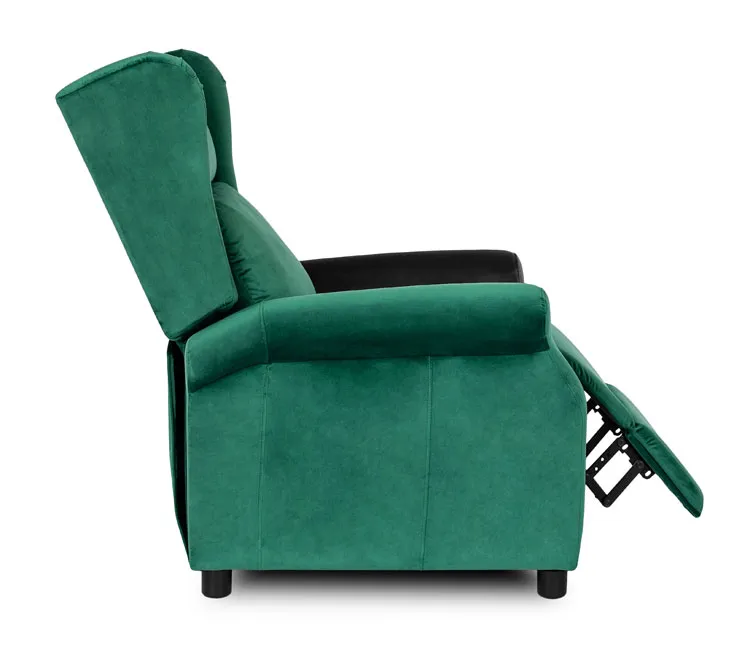 Zielony welurowy fotel wypoczynkowy rozkładany Ferro