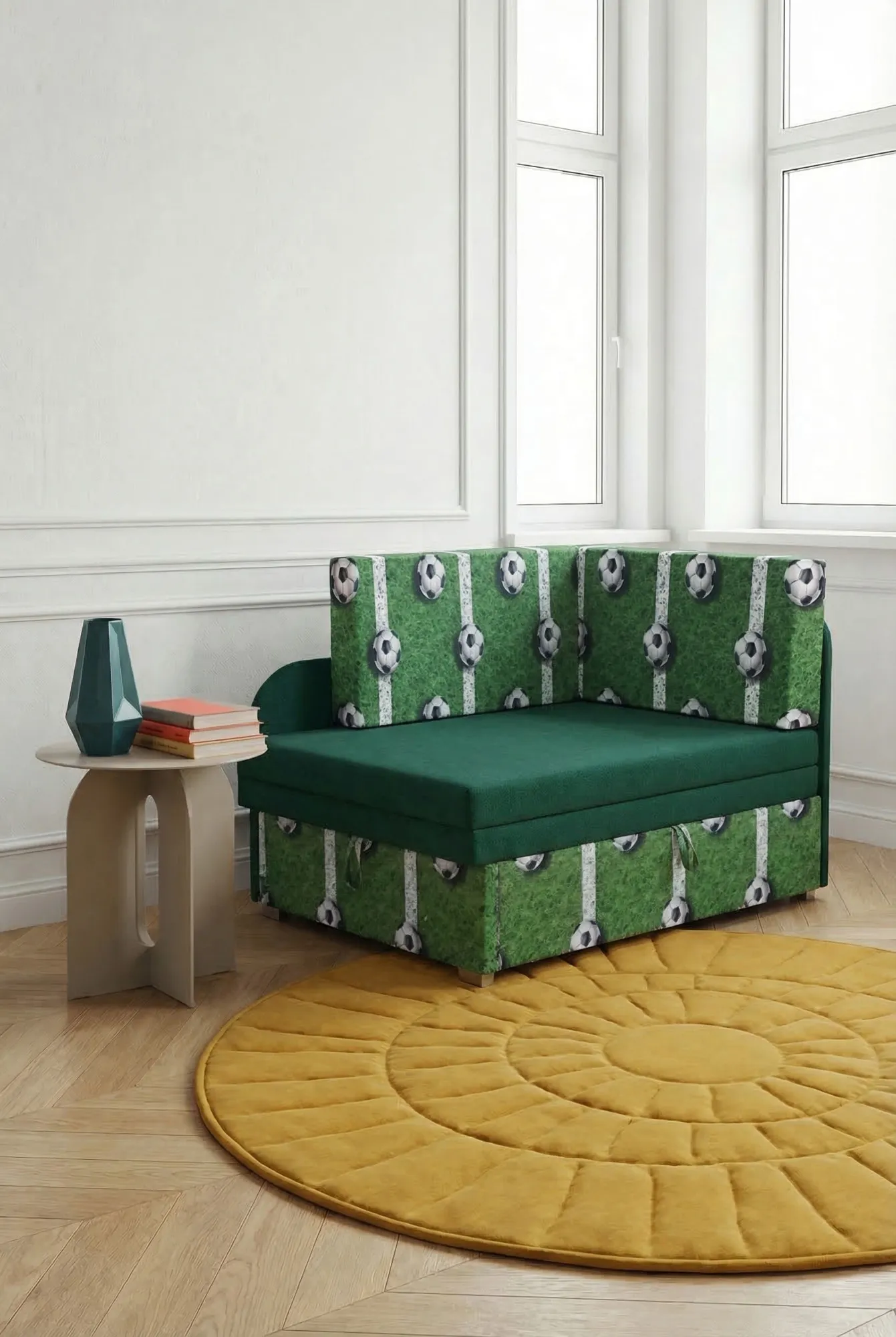 Zielony młodzieżowy narożnik rozkładany w piłki - Paster 14X
