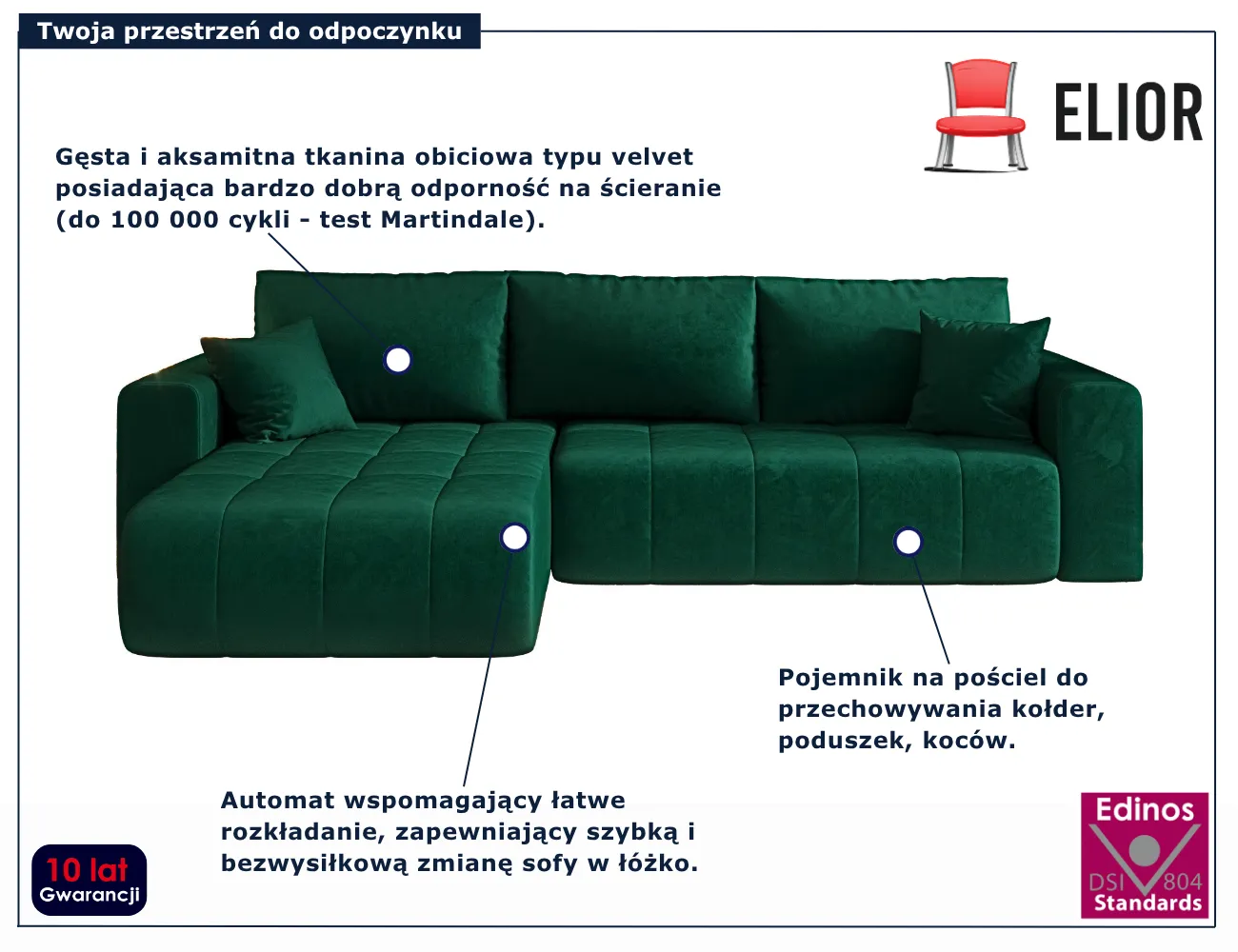 Dotyczy: Szary rozkładany narożnik welurowy - Ressani