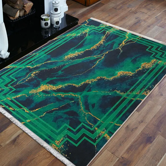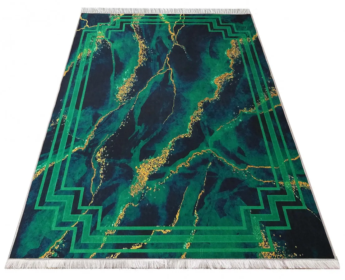 Zielony nowoczesny dywan imitujący marmur Arkos