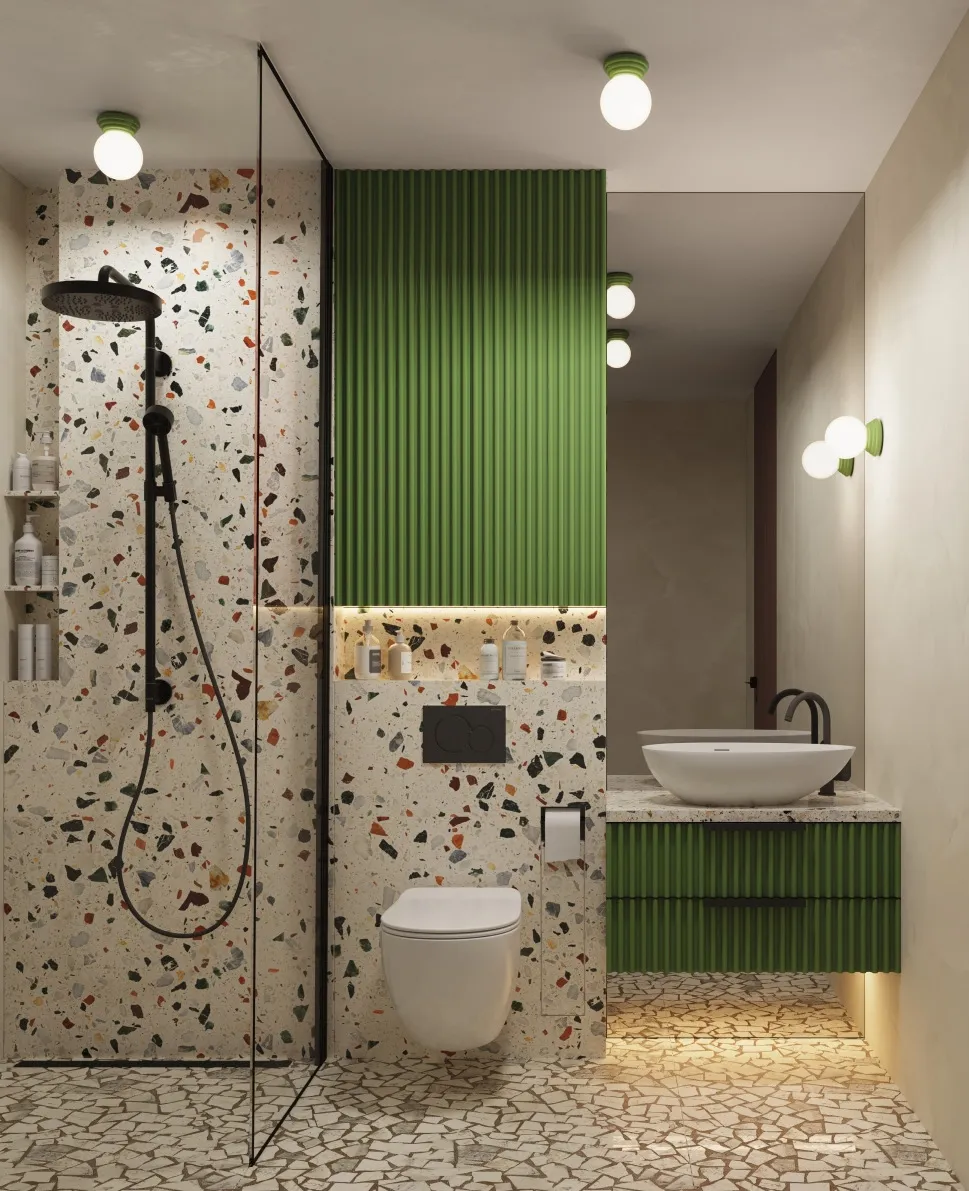 Aranżacja wnętrza ze szklanym zielonym plafonem M165-Weskom
