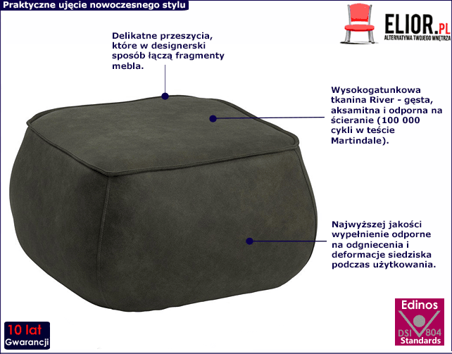 • Modna kolorystyka: oliwkowo zielony. Kliknij w link i sprawdź także inne pufy w sklepie Edinos.pl. Stwórz swój praktyczny zestaw mebli.