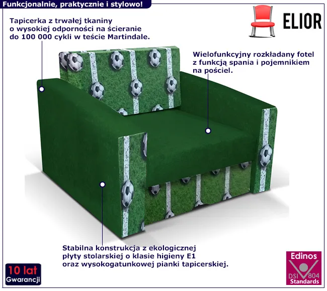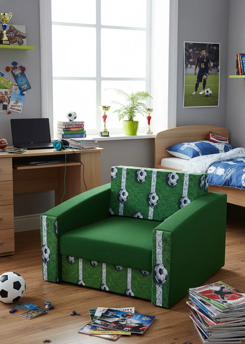 Zielony rozkładany fotel z motywem piłki nożnej - Dorilla 8X
