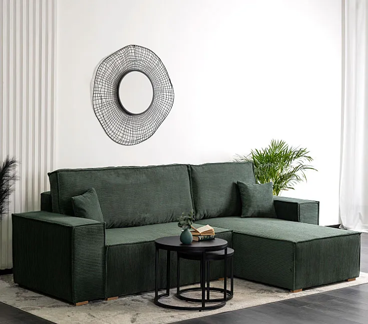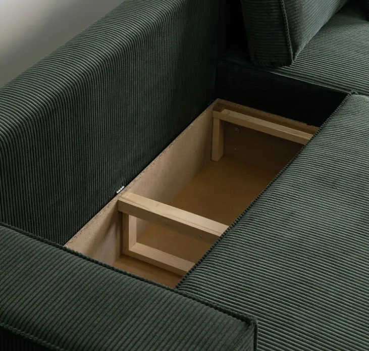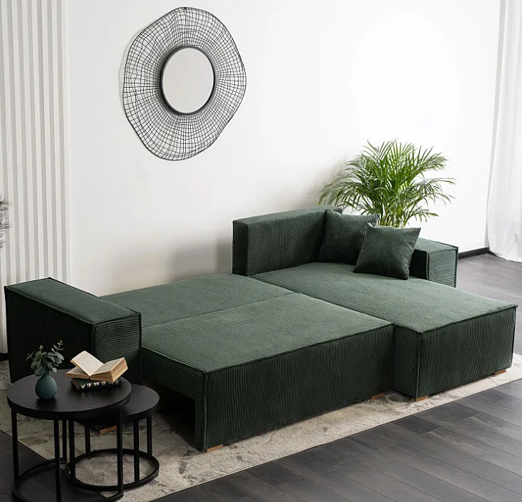Dotyczy: Beżowa sztruksowa sofa narożna modułowa z funkcją spania do salonu - Elanor