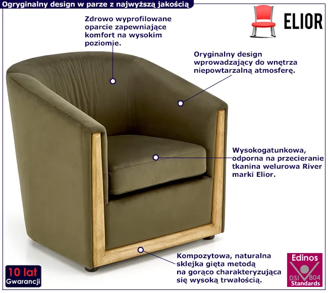 Fotel Lanis marki Edinos Premium to doskonałe połączenie komfortu, elegancji i wyjątkowego designu. Zamów go już teraz w cenie 1198 zł i ciesz się niepowtarzalnym stylem oraz wygodą, jakie oferuje. Przygotuj się na niezapomniane chwile relaksu i wspaniałe doznania, dzięki fotelowi Lanis!