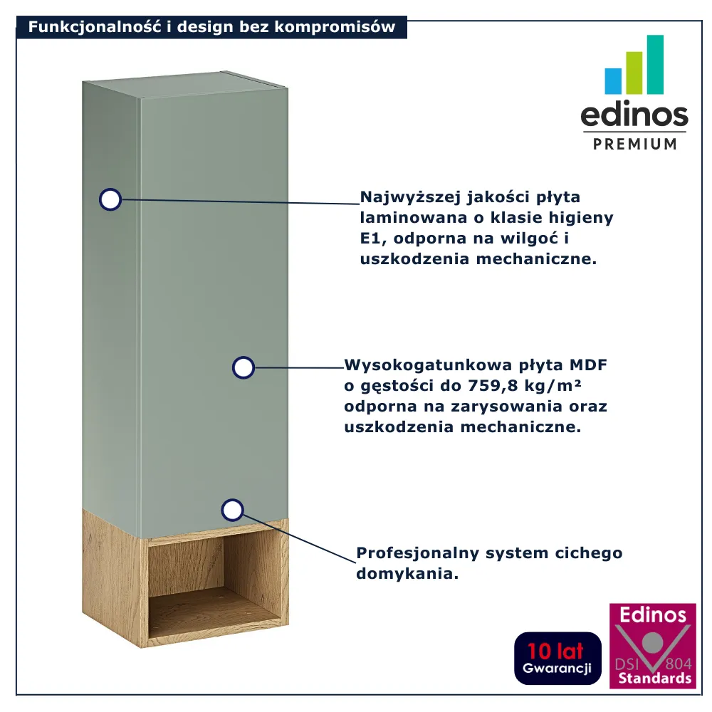 Zaprojektuj łazienkę, w której każdy element współgra z całością. Półsłupek wiszący Verdessa 7X marki Edinos Premium porządkuje przestrzeń i podkreśla naturalny charakter wnętrza, nie dominując aranżacji. Skorzystaj z atrakcyjnej ceny 498 zł i stwórz układ mebli dopasowany dokładnie do swoich potrzeb.
