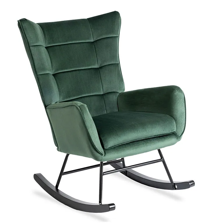Zielony welurowy fotel bujany Corno