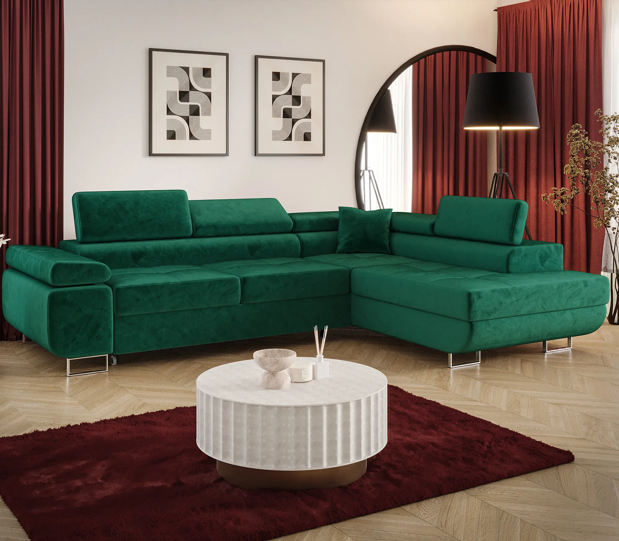 Dotyczy: Grafitowy narożnik welurowy z funckją spania - Tavesso 3X