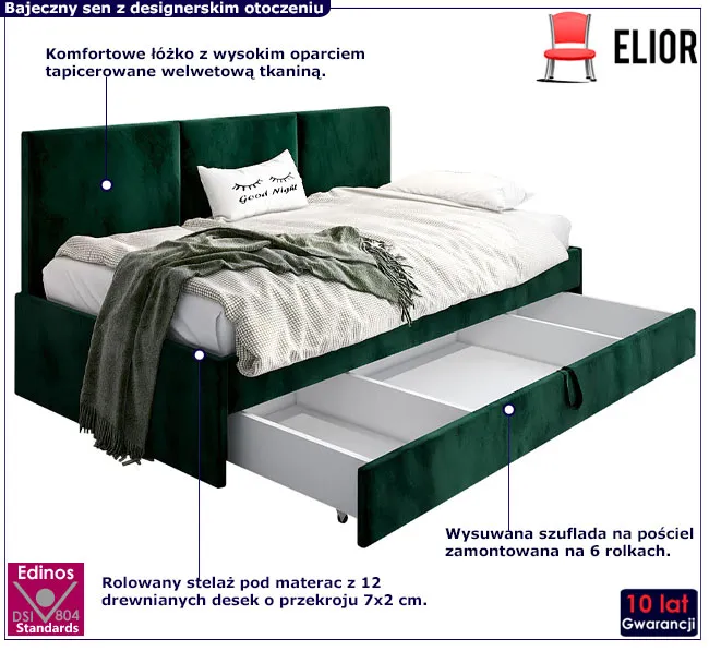 Dotyczy: Czarny tapczan młodzieżowy z szufladą Huzox 6X - 4 rozmiary