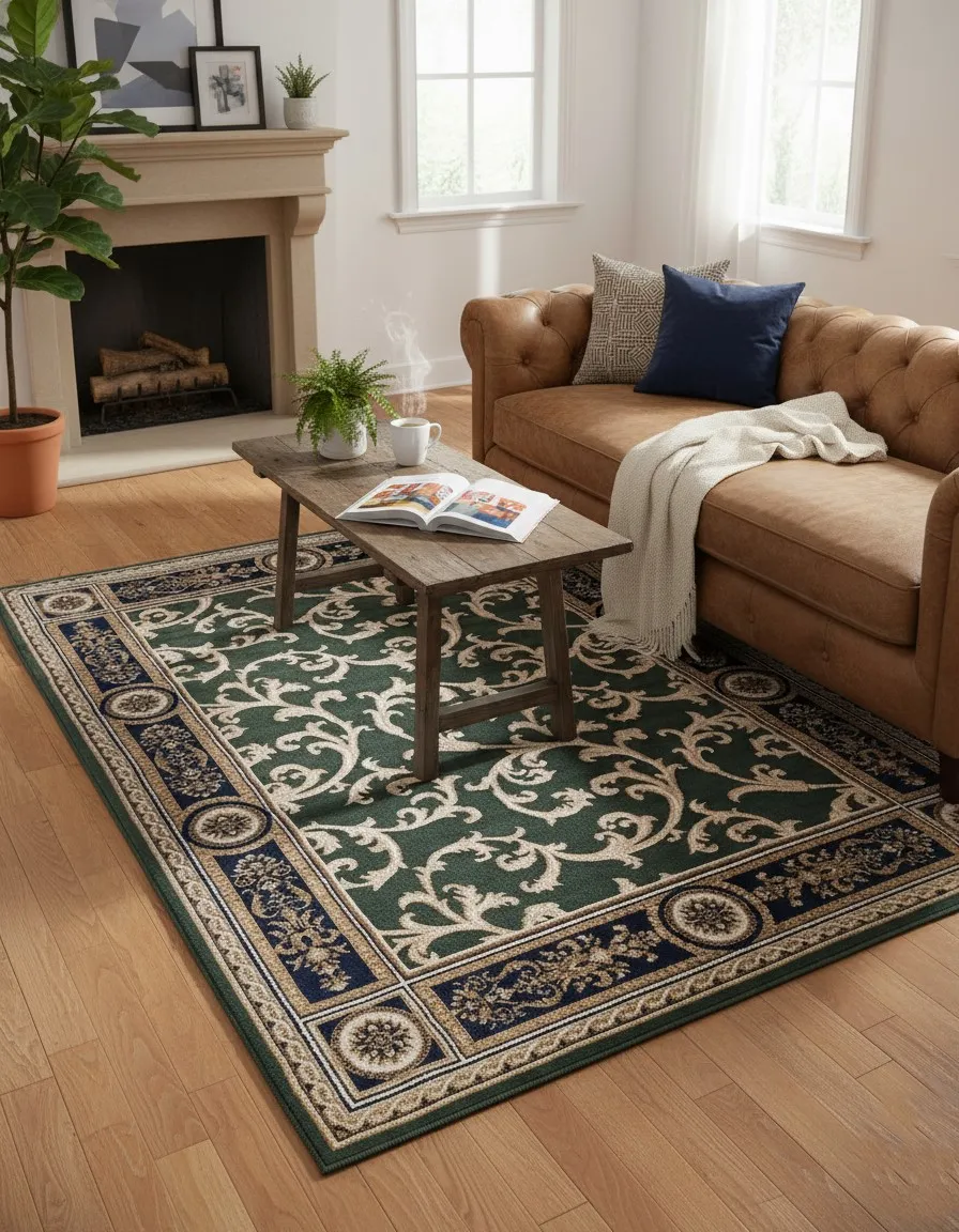 Zielony wzorzysty dywan w klasycznym stylu - Erso