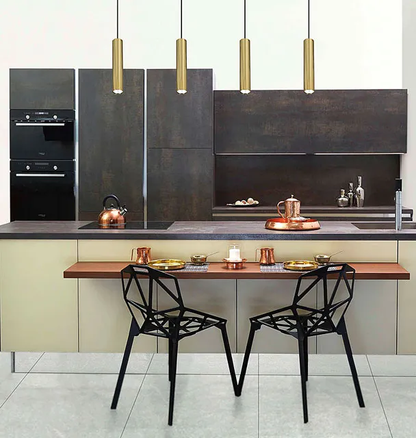 Złota lampa tuba do kuchni nad wyspę S968-Mokka