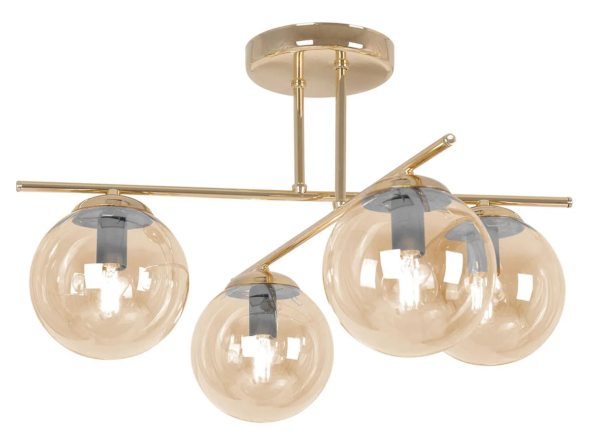 Złoto-bursztynowa lampa sufitowa glamour z 4 kloszami - A673-Didaro
