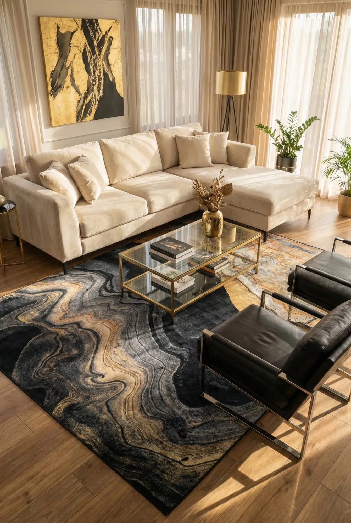 Złoto-czarny dywan w marmurowy wzór glamour - Piperita 5X