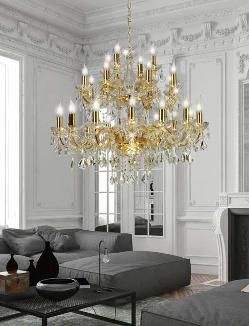 Złoty duży żyrandol świecznikowy kryształowy - Z010-Meros