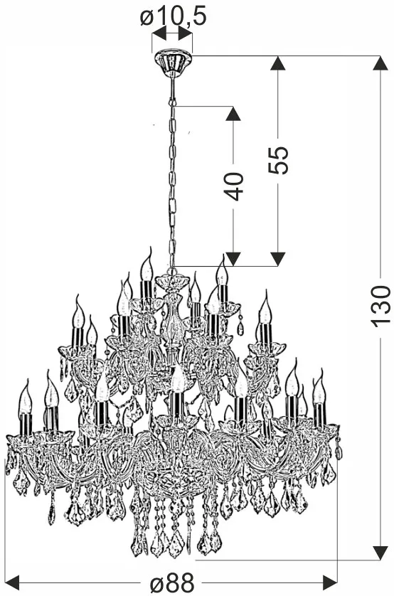Źródło światła: 28xE14, 28x40W, 230V/ 50Hz