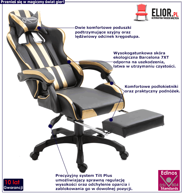 Dotyczy: Czarne krzesło gamingowe z podnóżkiem - Huria