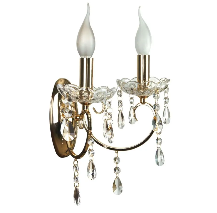 Złoty kinkiet dwuramienny do sypialni - K160-Fonti