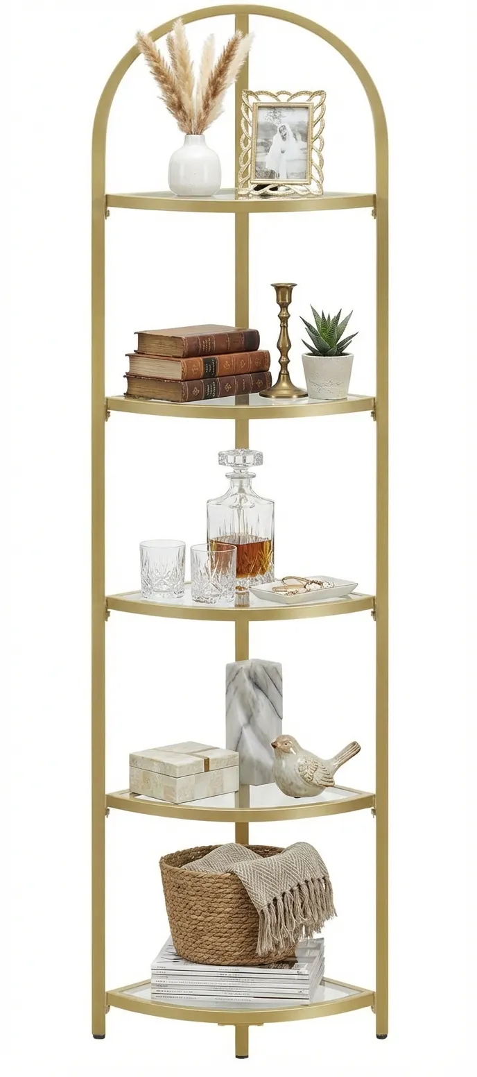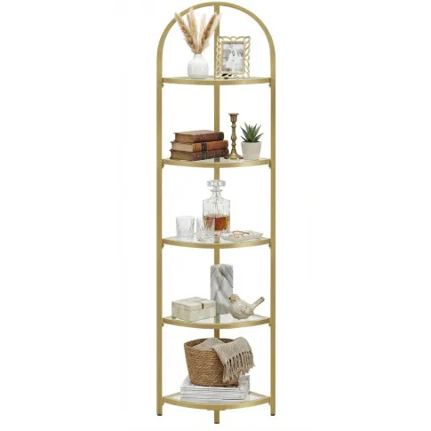 Złote akcenty i szklane półki wprowadzają do mojego wnętrza odrobinę luksusu. Jest elegancki i funkcjonalny, idealny do eksponowania moich ulubionych dekoracji. Montaż był łatwy, a jakość materiałów bardzo dobra. Szczerze polecam