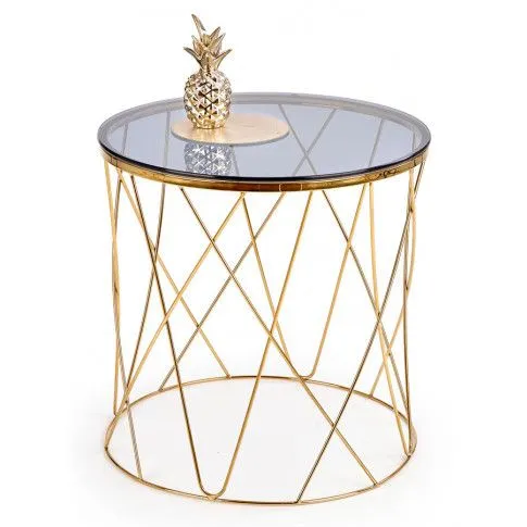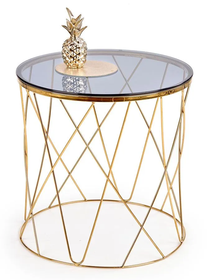 Okrągły złoty stolik kawowy ze szklanym blatem Parker