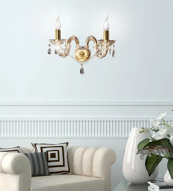 Złoty podwójny kinkiet świecznikowy z kryształkami - Z002-Meros