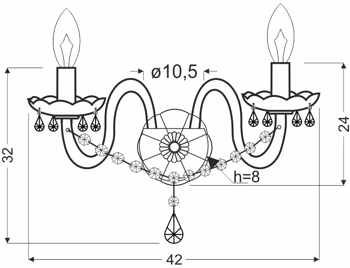 Źródło światła: 2xE14, 2x40W, 230V/ 50Hz