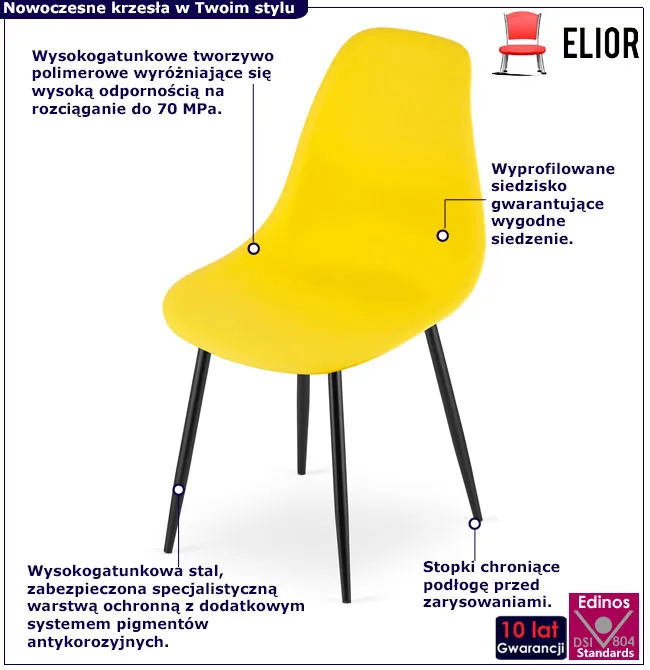 Żółte krzesło na czarnych nogach do stołu - Exin 4X
